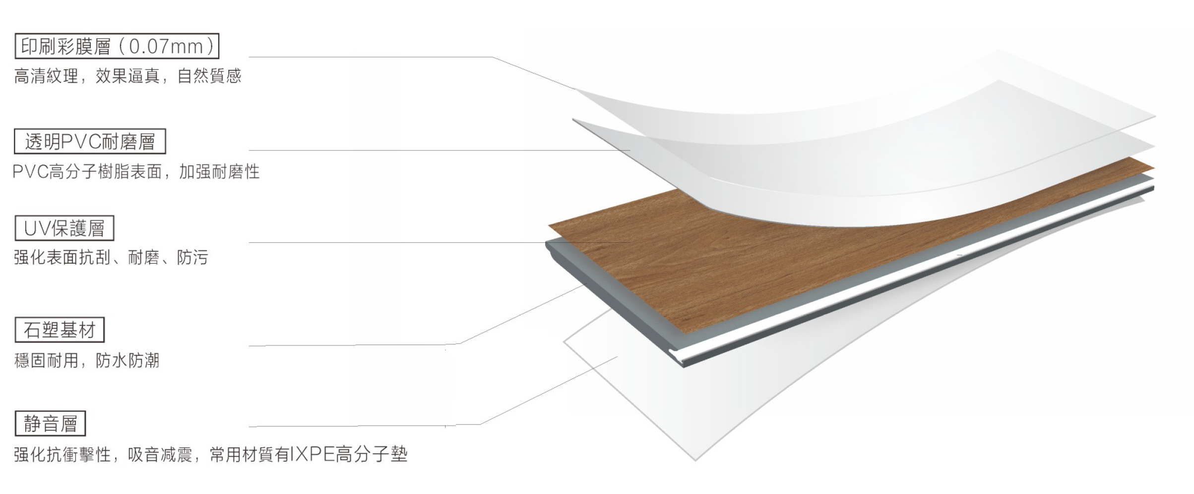 高密度、高硬度的基材結構,可斷絕外來水份及溼氣滲入,使地板保持乾燥狀態,有效阻絕蟲蟻侵害,極適合多雨潮濕的臺灣氣候。